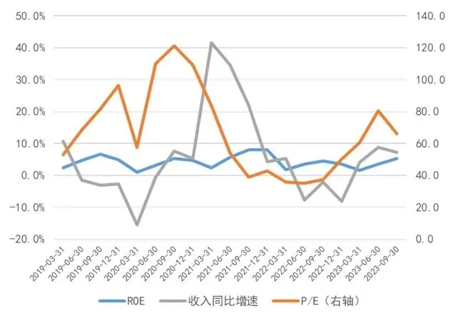图7:A股上市文化企业ROE、收入增速及P/E情况