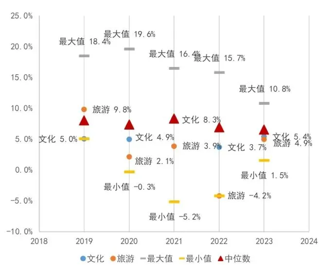 图1:2019-2023年A股上市文化与旅游企业ROE情况