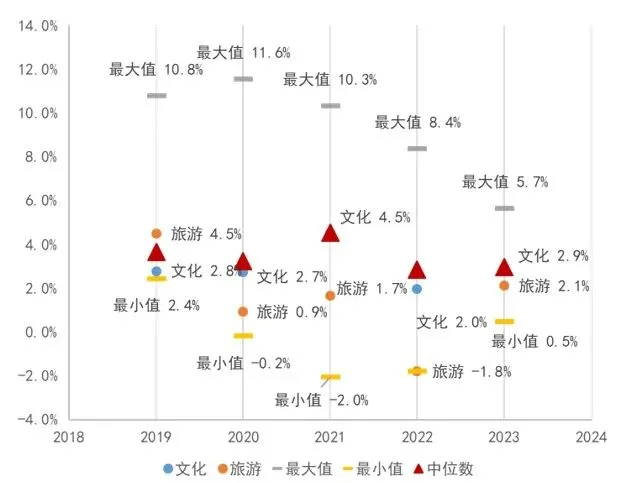 图2:2019-2023年A股上市文化与旅游企业ROA情况