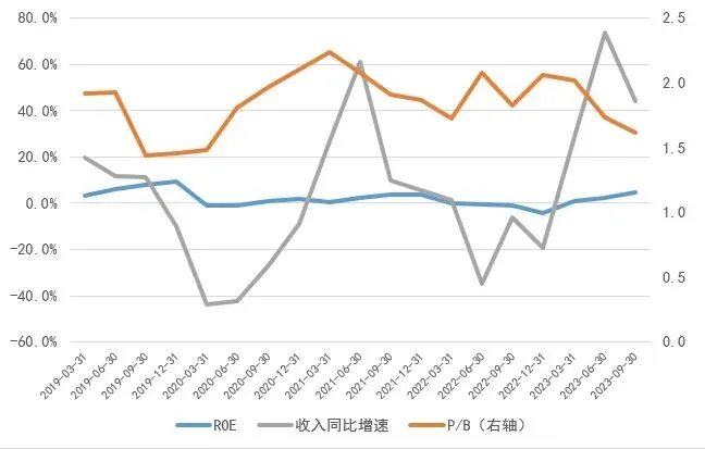 图8:A股上市旅游企业ROE、收入增速及P/B情况