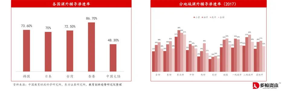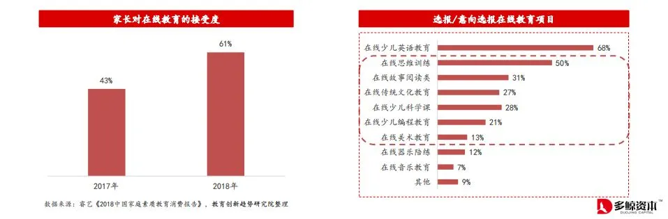 •打破地域限制——在线教育使得优质教育资源触及三四线城市用户,打破地域壁垒,各类教育渗透率进一步上升。