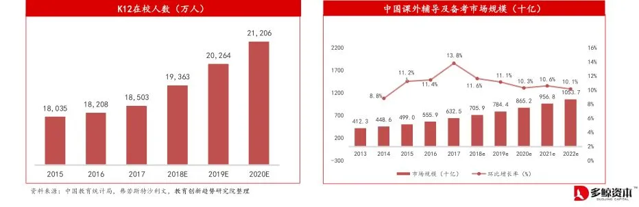 • 各类职业教育考试报名人数创新高,K12在校人数、在线教育市场规模稳定增长,需求不减。