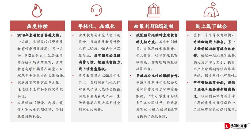 • 教育行业线下体验是关键,在此具备优势资源的教育集团、地产商纷纷布局,跨界融合已是大势所趋。