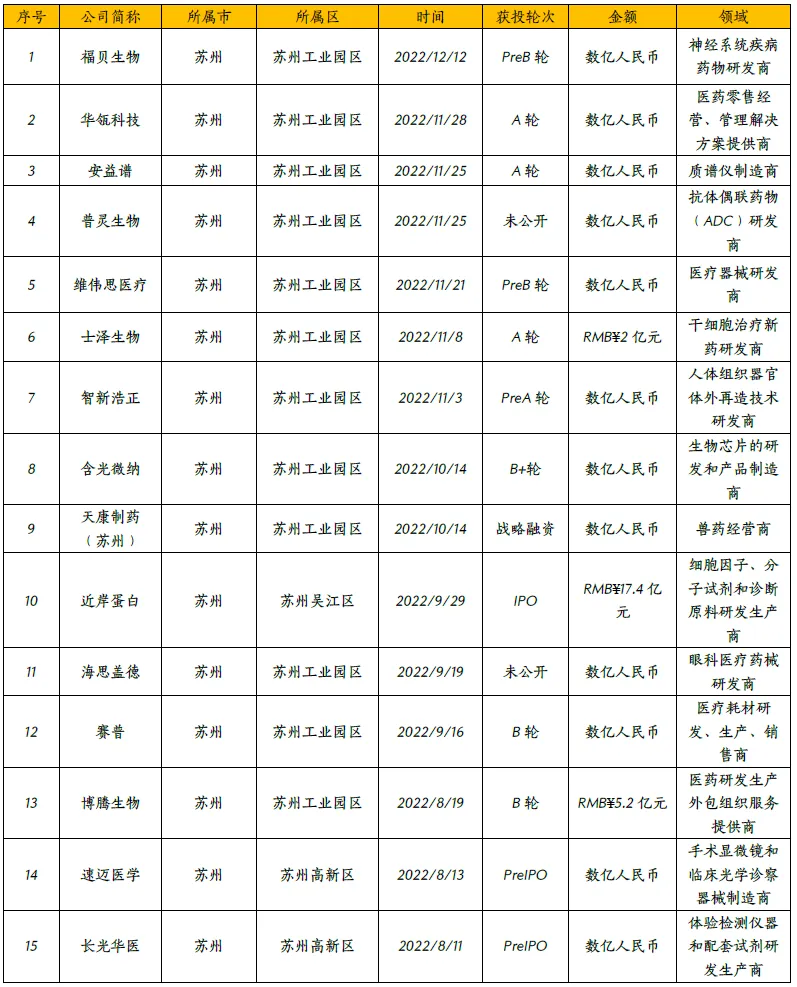 接下来,我们从不同维度来分析苏州生物医药产业2022年融资表现。
