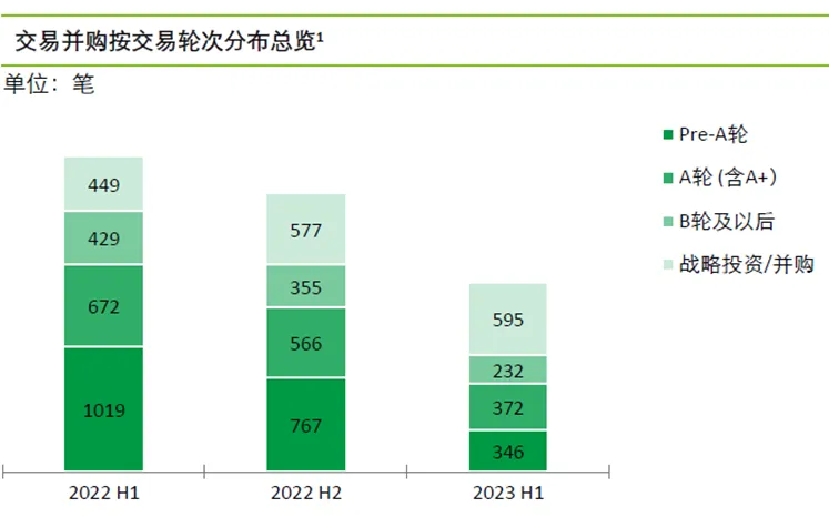 注释:1.Pre-A轮包含天使轮及种子轮;B轮及以后为B轮(含Pre-B及B+轮)至Pre-IPO轮。