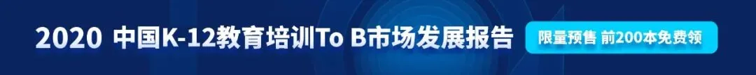 《2020中国K-12教育培训To B 市场发展报告》开启预售,由中国教科院、好未来集团、奥纬咨询联合发布,文末点击“阅读原文”,前200名支付10元邮费即可领取。