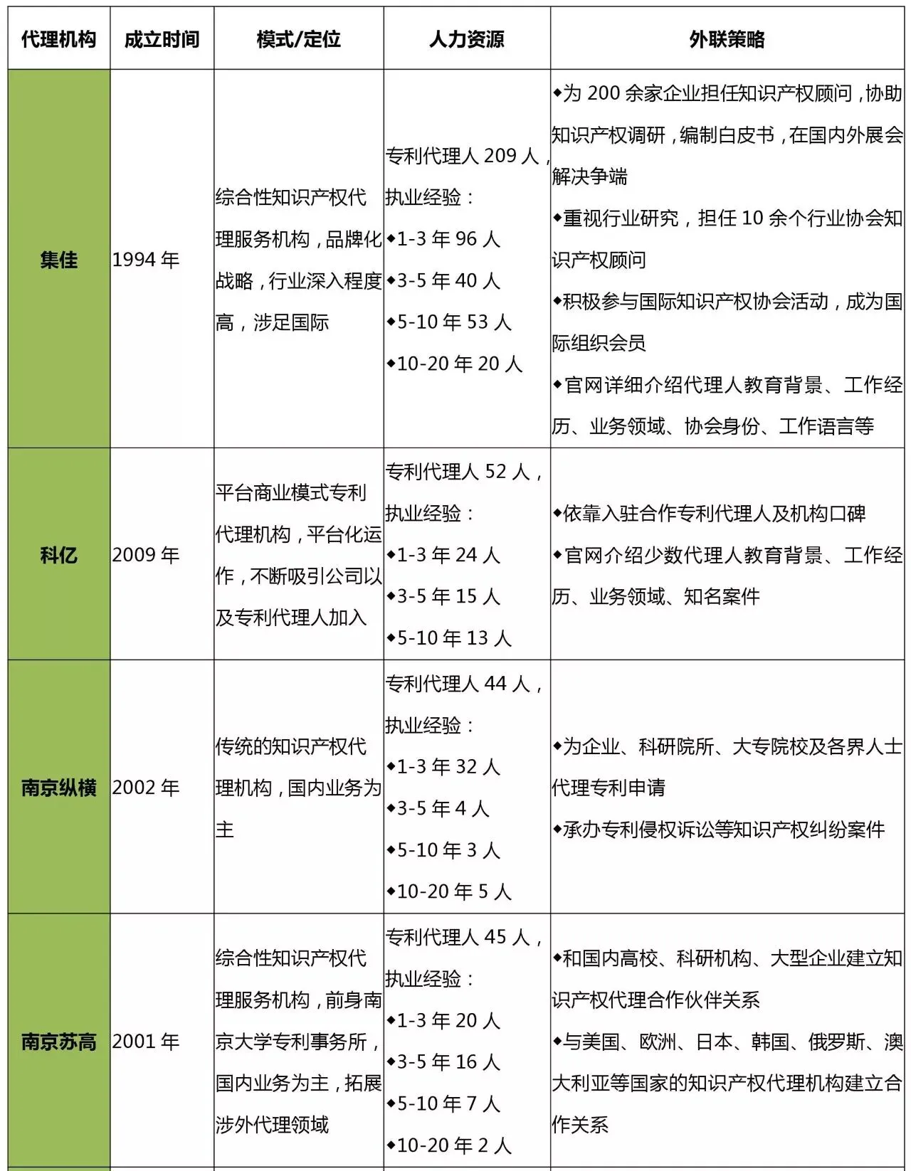 第三篇“行业竞争”:针对商标和专利行业,分析其消费群体及议价能力、潜在进入者和地域分布、竞争者排名及主要竞争者特点,尤其对主要竞争者做了较为细致深入的情报收集和研究对比,分析了8个商标行业竞争者的“独特优势、企业战略、产品策略”,10个专利行业竞争者的“模式定位、人力资源、外联策略”,6个知识产权诉讼行业竞争者的“特色、律师团队、知识产权领域情况”。