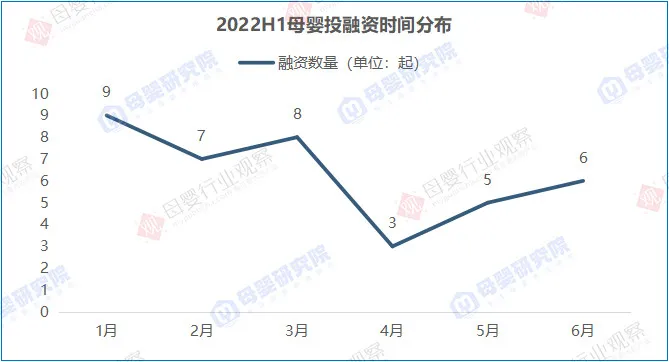 前段时间母婴研究院调研显示,超95%的母婴企业表示2022年比2021年更难,48.5%的企业现金流不足以支撑6个月,92%的企业认为2022年疫情对我们的影响比2021年更大。疫情之下,无人幸免。在母婴行业观察团队走访市场的过程中,“今年肯定会死掉一批企业”“承受力已经到了极限”这样的声音不绝于耳。出生人口持续下跌,母婴市场存量出现一定的萎缩,人货场加速迭代也给品牌带来诸多挑战。外滞内卷双向夹击的大环境下,创业者和投资人都备受压力,但依然有一些品类机会和增长信号值得关注。近日,母婴行业观察旗下产业分析平台母婴研究院发布《2022H1母婴行业投融资报告》(以下简称《报告》),从资本市场解读2022母婴行业的最新趋势。《报告》显示,2022上半年母婴行业共有38起投融资事件,融资金额为14.8亿元。母婴研究院持续跟踪发现,上半年母婴投融资波动剧烈,年初1-3月融资数量基本保持平稳,但随着疫情“倒春寒”来袭,市场投资热情急速下滑,4月跌至低谷。虽然5-6月微增,但面对外界诸多不确定性,资本市场更加谨慎。