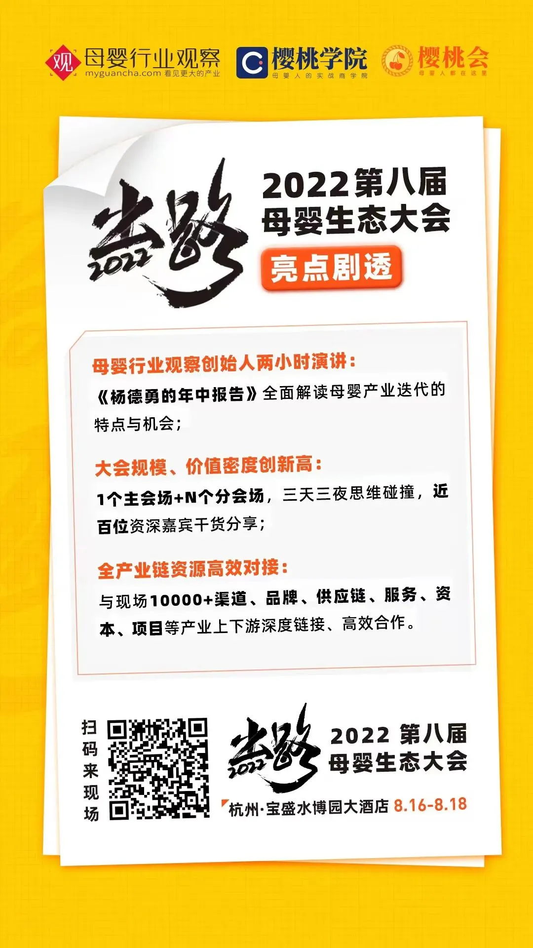 2022年初,君乐宝2亿元入股国内最大的水牛奶加工企业皇氏来思尔,加速拓展西南、华南市场,这是今年乳业巨头第一笔战略投资。伊利全面收购澳优,乳业巨头收购婴配粉细分领域之王,“牛+羊”两大主力加持下,伊利在中国奶粉行业的体量规模一时无两。蒙牛私有化雅士利,达能退出。目前雅士利国际旗下奶粉品牌包含雅士利、多美滋、瑞哺恩、朵拉小羊、合作品牌Arla、特康力等,产品覆盖牛奶粉、羊奶粉、有机奶粉等多个主流品类。相关人士分析,蒙牛此举意在重整奶粉业务,搏击中国奶粉市场新一轮发展。优然牧业12亿港元收购中地乳业27.16%股份,上游奶源争夺战基本进入尾声。此外,众多乳企以收购兼并的方式快速入局奶粉细分市场,如达能与湖南欧比佳达成战略合作,日前双方携手后在中国市场推出的全新品牌同时也是该公司旗下首批符合奶粉新国标的羊奶粉产品卓徉和诺优羊已经拿到配方注册;美赞臣全资收购美可高特,快速聚拢羊乳资源,补齐羊奶粉布局。值得注意的是,线下母婴连锁的整合兼并仍在继续进行,但不同地域在整合方式、整合进程上表现出差异性。母婴行业观察团队走访各地母婴市场时,发现当下火热的“合伙人模式”已经发展出许多新花样,例如,南国宝宝采用众筹“子公司”商业模式,总部、区域门店和团队三方集各家优势资源成立一家子公司;贵州优康宝贝采用三级合伙人制度,后台培训部占51%股份,门店前台有49%的股份,这其中区域经理占34%、店长15%,这一模式使参与各方都有主人翁意识。不过面对母婴零售整合浪潮,目前仍有一些门店持观望态度。同时从去年到今年,母婴企业闯关IPO的热情不减。从2022上半年来看,阳光乳业已成功上市;认养一头牛IPO申请获受理,将在上交所主板上市;骑士乳业转战北交所;蓓康僖母公司宜品乳业启动上市计划;君乐宝已经正式启动IPO,争取在2025年完成上市……但并非所有企业的上市之路都一帆风顺,红星美羚经历一波三折,创业板IPO被否后发布千字公开信,吐露上市简直比“唐僧取经还难 ”,红星美羚董事长王宝印也明确红星美羚将不再上市。美庐生物二度IPO告败,上市之路也是异常艰难。除奶粉市场外,主营非织造材料和护理用品的优全护理也在上半年创业板IPO被终止,中小企业IPO仍存在不少问题。综合来看,2022年流入市场的资金减少,一方面和大环境动荡、出生人口持续下滑等客观因素有关;另一方面也在于母婴市场逐渐发展成熟、专业玩家之间的竞争愈发激烈,在众多细分赛道中新品牌想要跑赢越来越难。但消费行业的历史反复证明,只有在资本退潮后依旧被用户需要的才是真需求,只有在经济波动之下依旧能够实现增长和盈利的,才是好的商业模式。回归本质,母婴企业仍需从用户洞察、产品创新、供应链建设、渠道优化、用户触达等多方面不断夯实基本盘,方能实现突围。(注:很多融资事件中,对外透露的融资金融并不明确,往往用“数百万”、“数千万”、“近千万”等词汇来概述。数百万可能是100万至500万之间,数千万可能是1000万至5000万之间。为了方便统计,我们统一设定,取中间的数值,数百万融资取300万来计算;数千万融资取3000万来计算;另外,保守起见,近千万融资我们取600万来计算,近千万美元则取600万美元即3600万人民币;千万级指1000万;近亿元指6000万;上亿元指的是1亿元。过千万指1000万,过亿指1亿。未披露融资金额未计入,美金经过换算。数据经公开数据整理,仅供参考,不构成投资建议。)2022全球母婴大会亮点剧透: