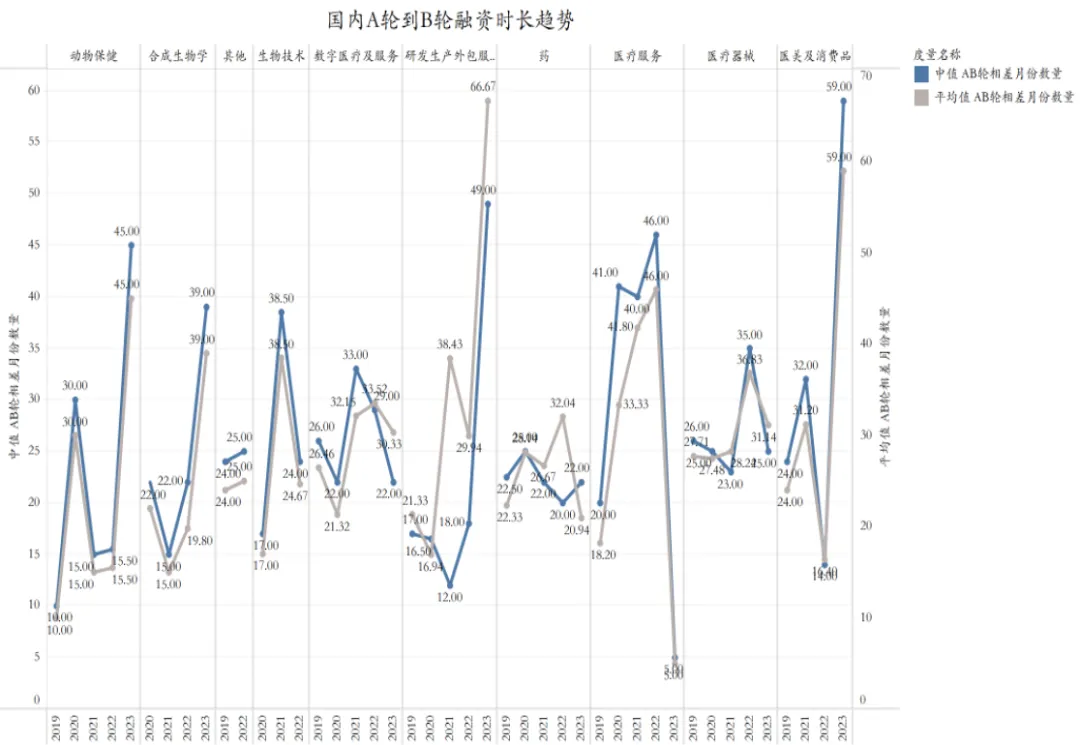 •受创新壁垒和市场竞争的影响,传统医疗服务融资速度下滑显著,平均融资周期长达 46 个月。