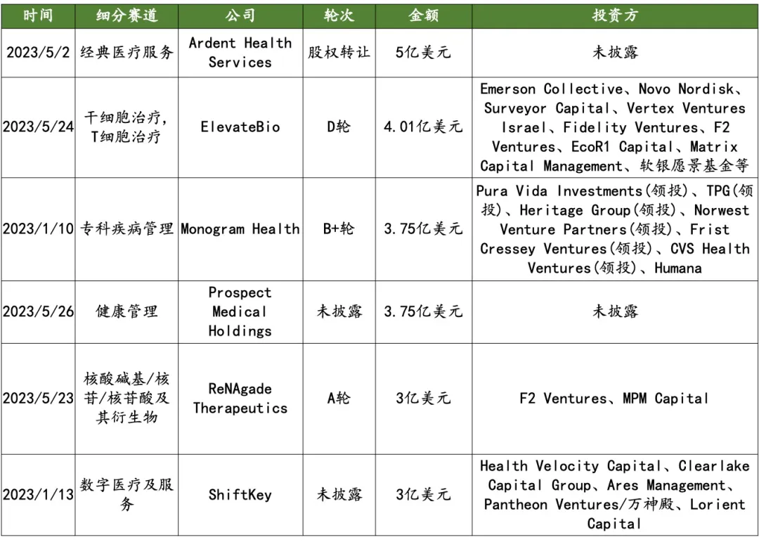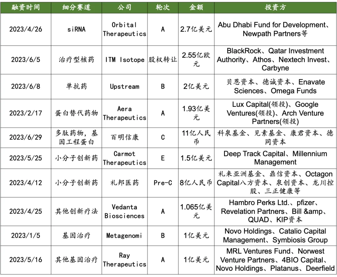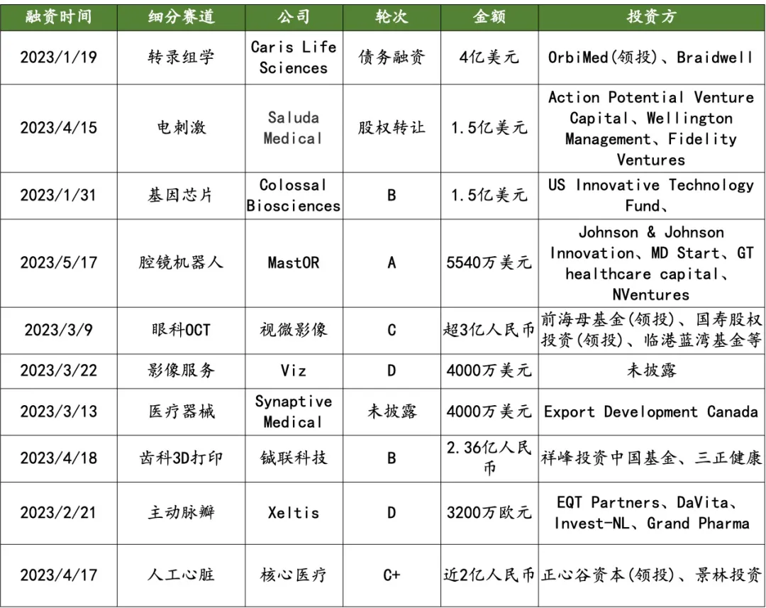 •2023 H1 相比 2022 年平均融资周期大幅缩短,在 2023 H1 完成 B 轮的企业有微岩医学、 曙芯生物、 申科生物、 友哲科技、 阿波罗巴、 邦器生物。
