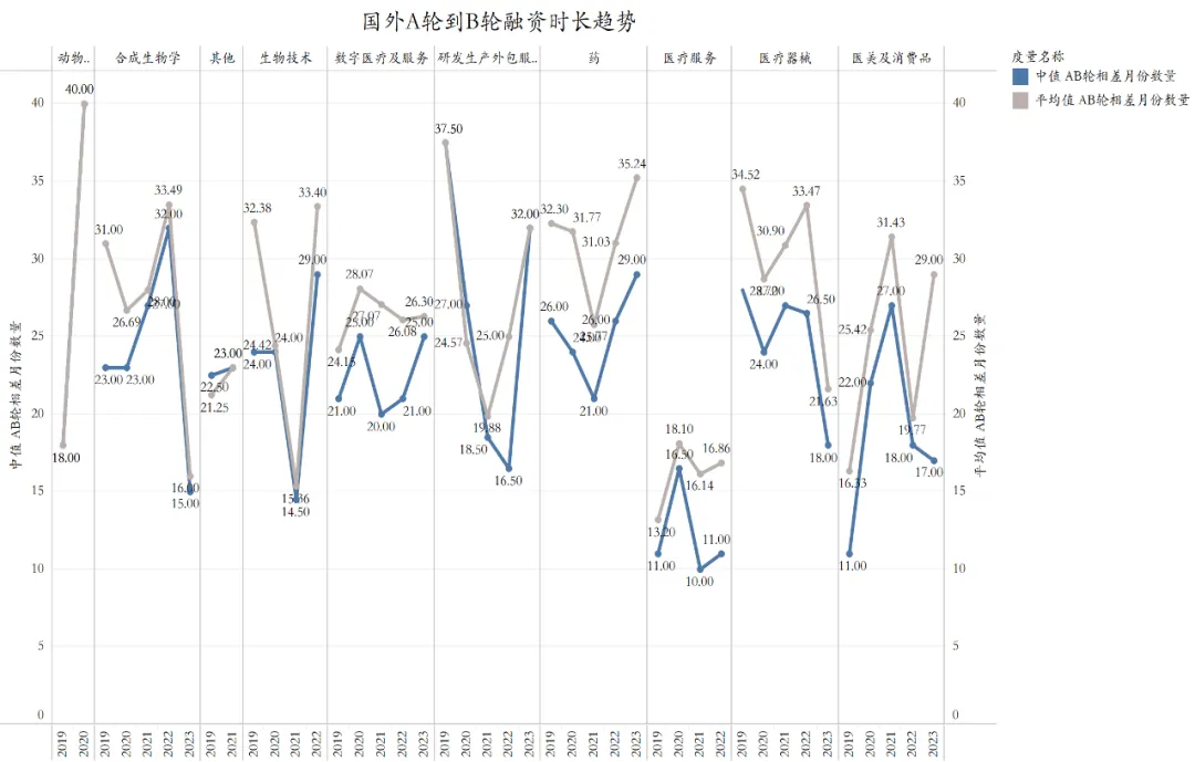 国外药整体发展遇冷,2023 H1 融资周期放缓到 29-35 个月。
