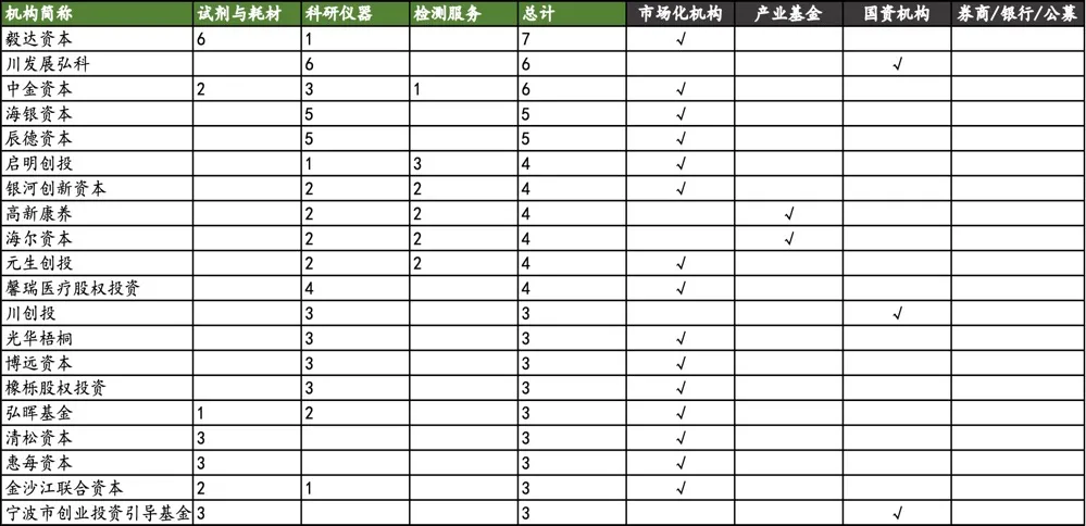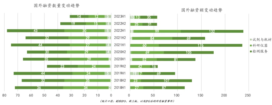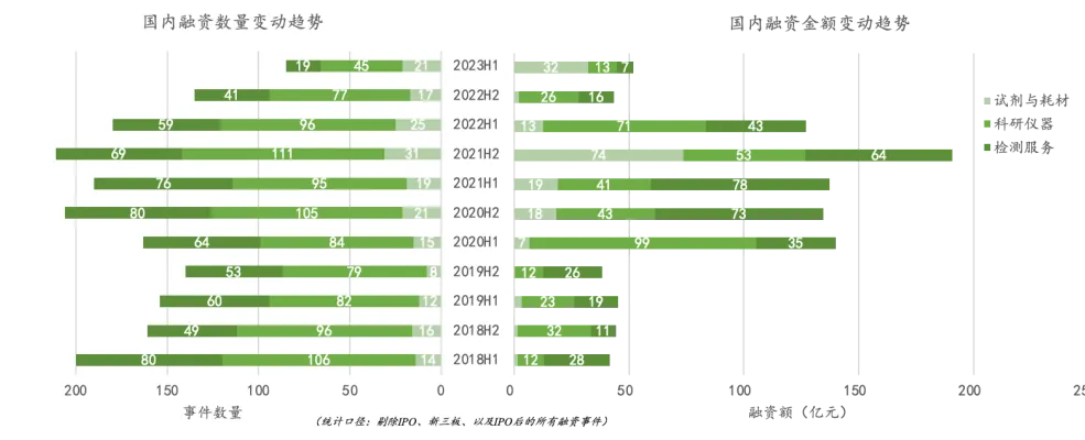 •科研仪器和检测服务融资额下降明显,均下降 50% 以上。