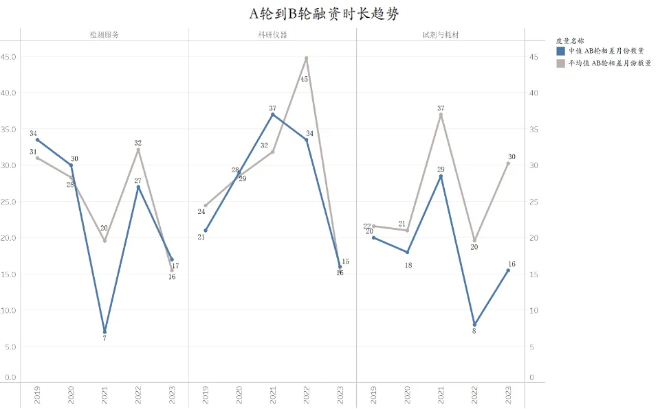 •2019-2021 年,科研仪器赛道整体融资节奏加快,项目平均周期从 33 个月缩短至 24 个月。2022 年,科研仪器赛道投融资节奏放缓,平均周期延长至 37 个月。