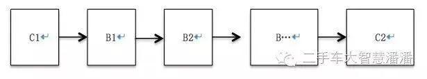 二手车行业是一个信息不对称的行业,于是目前超过80%的交易量必须经过若干个B端环节,如下图: