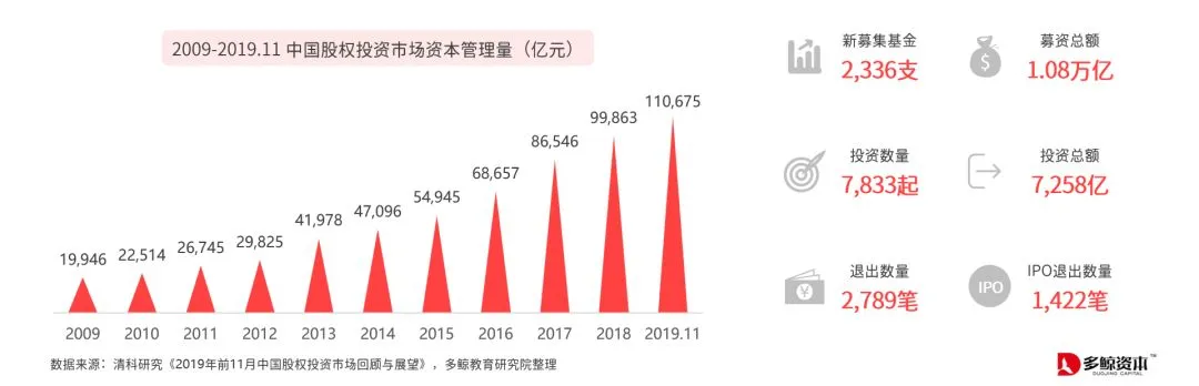 截止2019年11月,中国股权投资市场资本管理量超过11万亿人民币。