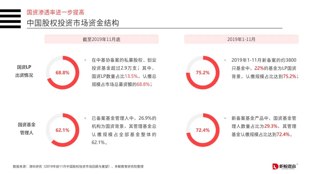 募资端最大的变化来自于国资,国资渗透率进一步提高,成为2019年最大的金主爸爸