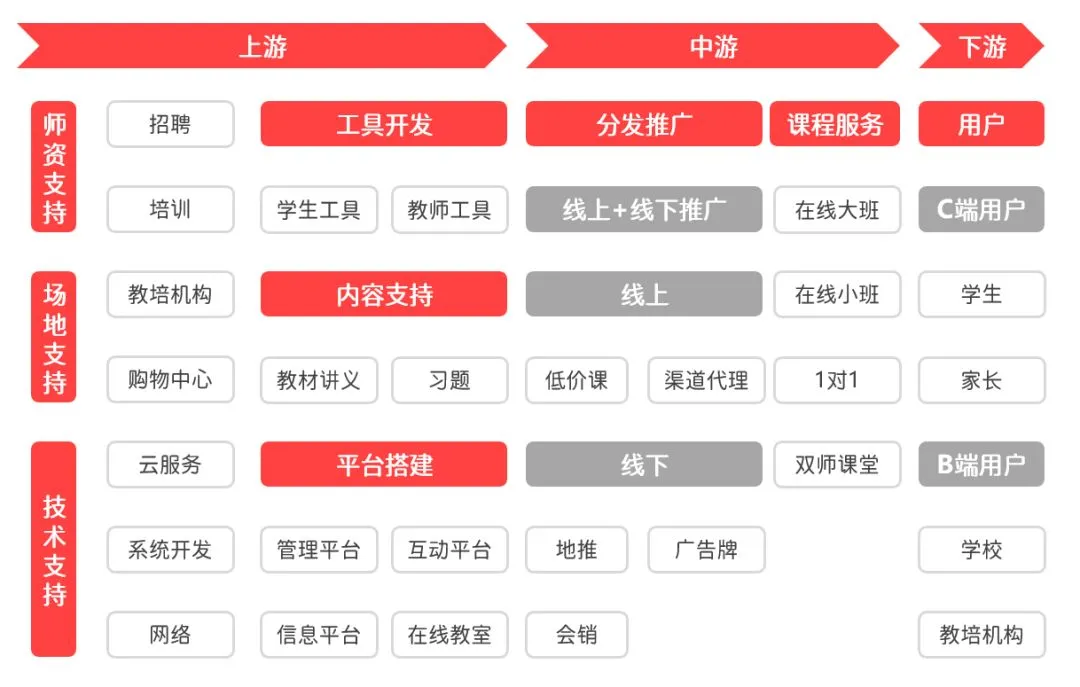 另外,中国城镇化建设的稳步推进,以及以移动互联网为代表的技术革新,催生了一大批的新职业人群和教育消费场景,同时教与学的场景逐渐打破只发生在校内的固有态势,新的流量平台正加速改变传统意义上的教与学的角色,通过市场化的方式在一定程度上优化了整个社会关于优质教育资源的供给。