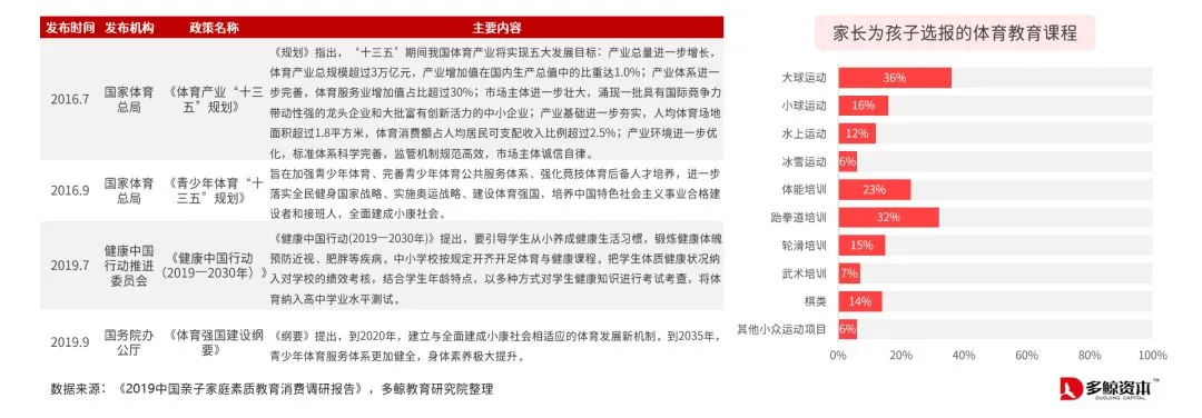 面向少儿阶段的升学/背景提升的体育项目是潜在的市场机会。