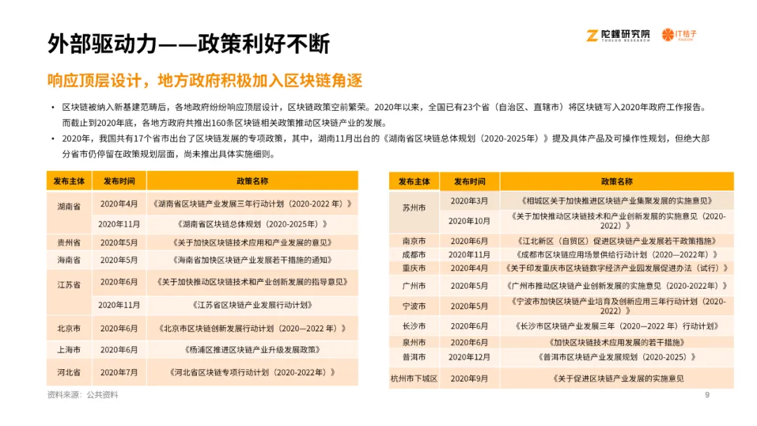 与此同时,一方面,区块链技术所代表的虚拟货币屡被禁止,2020年我国监管更是重拳出击,北上广等多地出具虚拟货币警示公告,严打虚拟货币骗局。而另一方面,尽管在政策推动下,众多企业做了很多尝试,但作为区块链价值支撑的应用落地仍进展缓慢。