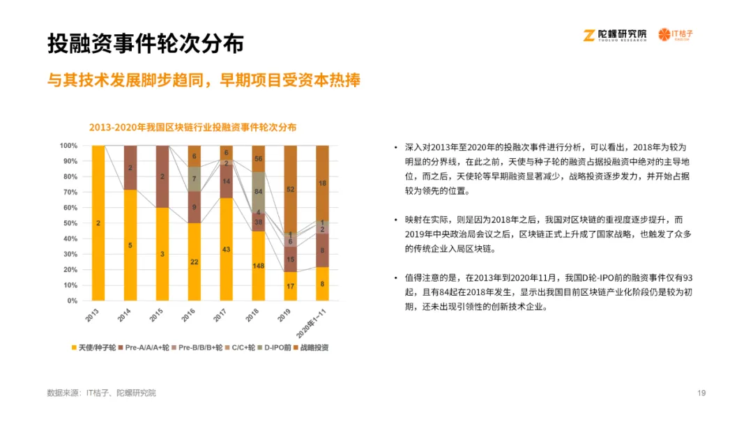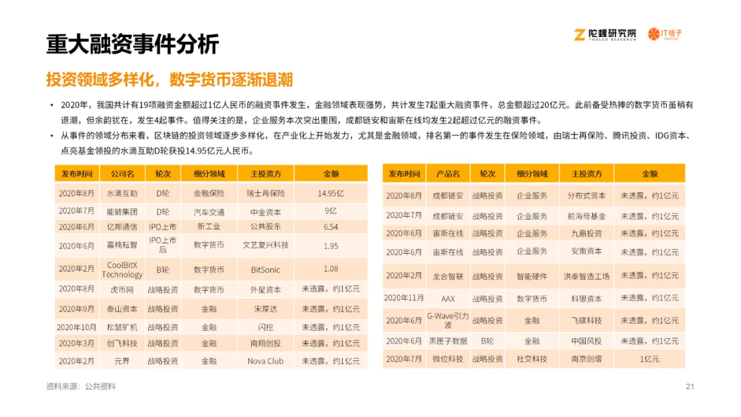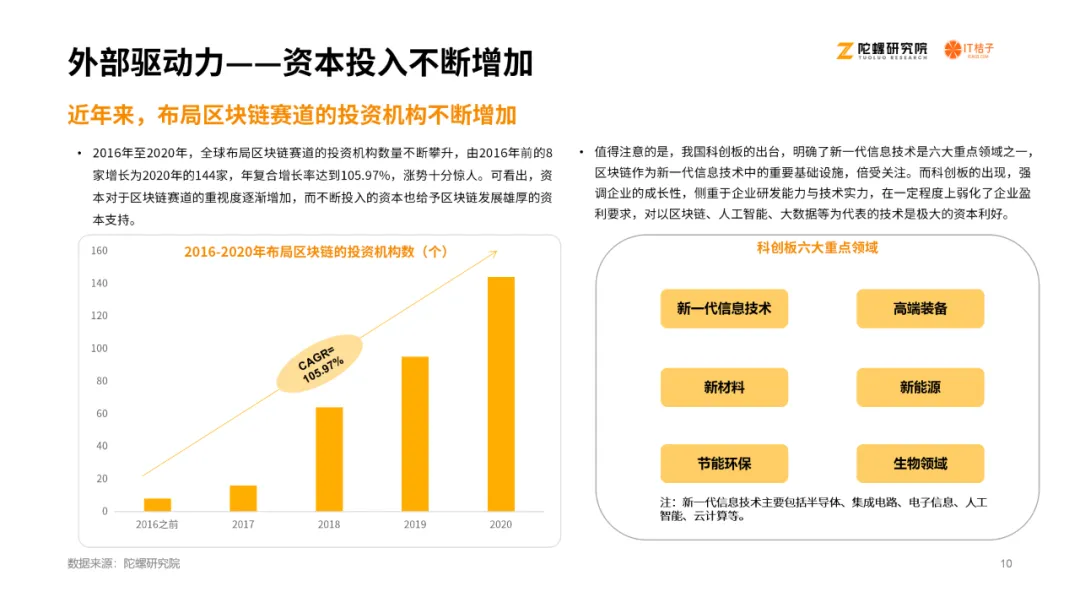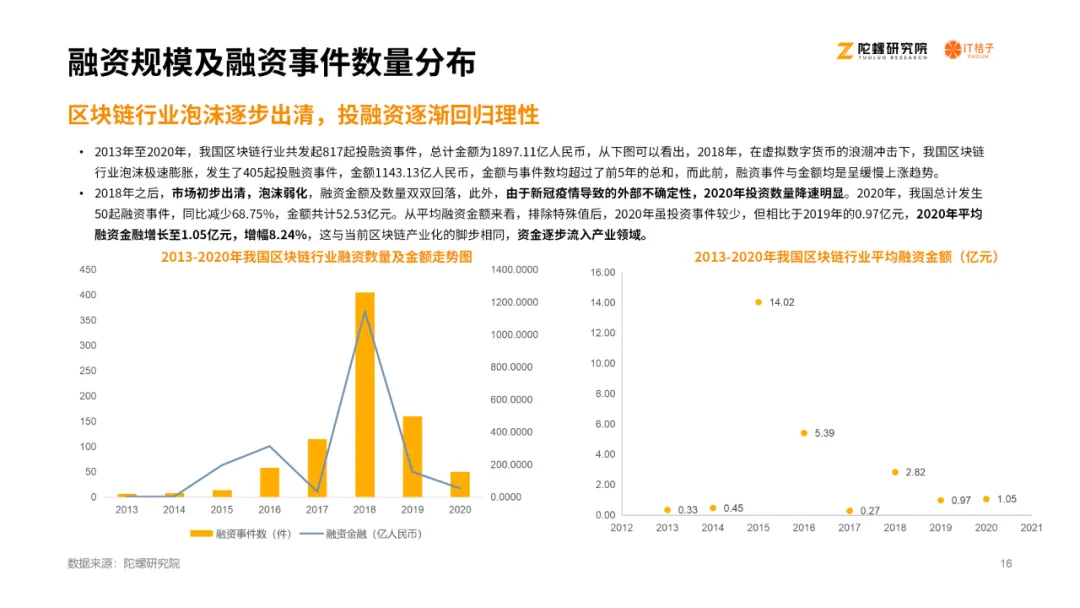 针对以上问题,由陀螺研究院、IT桔子联合撰写,星球日报、碳链价值、深圳市信息服务业区块链协会、链证经济联合发布的《2020区块链产业投融资报告》于今日面市,本报告将通过探索区块链发展的内外部驱动力以及发展历程,阐述区块链行业目前的发展现状,并通过对投融资情况的总体以及细分领域分析,解剖当下区块链发展存在的问题及前景,旨在加强大众对于区块链的内在投资价值认知,推动区块链资本市场不断完善与发展。