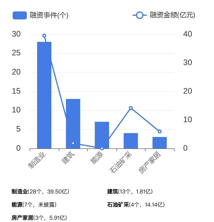 2023年,传统行业是最热行业,共发生59个投融资事件,其中制造业赛道有28个,成为传统行业最热赛道。