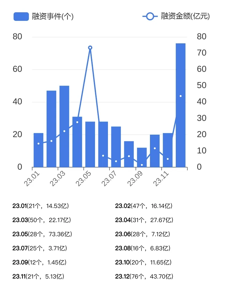 2023年,传统行业是最热行业,共发生59个投融资事件,其中制造业赛道有28个,成为传统行业最热赛道。