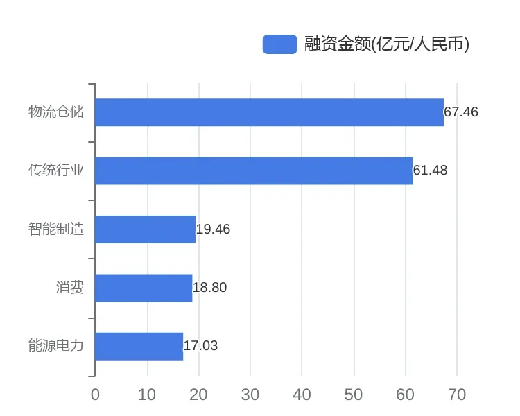 另外已披露交易金额排名前五的行业依次为物流仓储、传统行业、智能制造、消费、能源电力,涉及已披露总金额为184.21亿元人民币(占所有行业79%)。