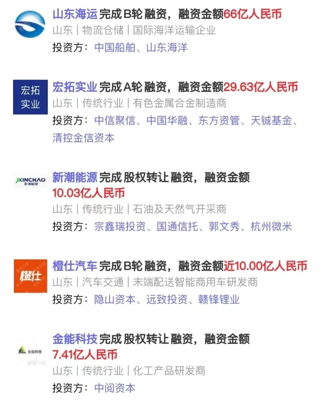 2023年,「山东省」新增5个大额融资事件;无新增独角兽企业。