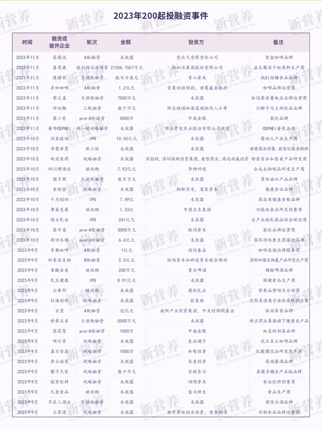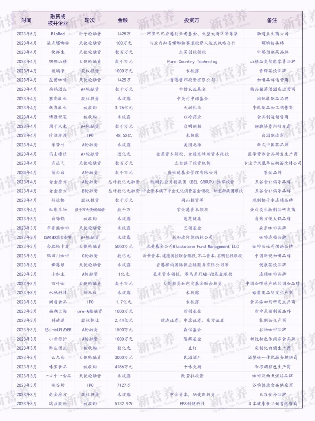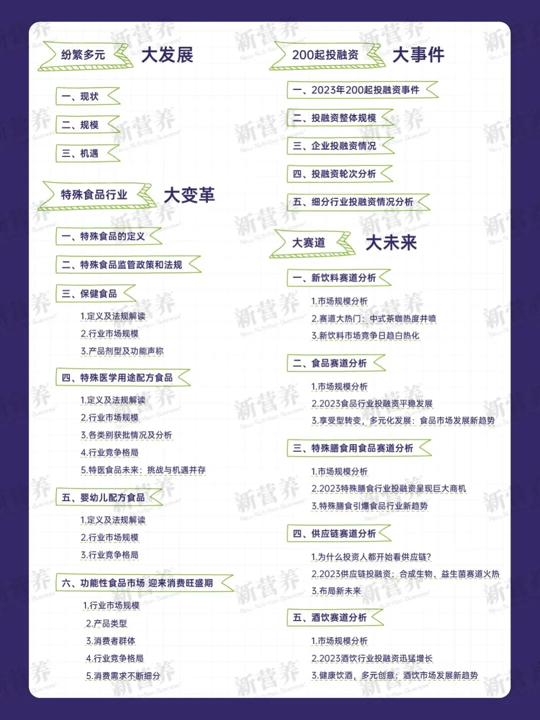 特殊膳食用食品根据特殊人群的特殊生理和病理状态来针对性地确定其生理及营养需要,充分体现了对特殊人群的特殊关怀。我国特殊膳食用食品消费基数庞大,行业具有良好的发展基础和潜力。近几年,中国特殊膳食用食品市场规模持续增长。一方面,中国人均收入水平持续提升,消费者对特殊膳食用食品消费能力增强;另一方面,消费者健康意识提高,对特殊膳食用食品认知程度提高。据新营养通过公开数据分析,2021年中国特殊膳食用食品市场规模为3452亿元,2022年达到了3860亿元,增长率为11.8%,2023年有望达到4316亿元,预计2025年将达到5394亿元。2021-2025年中国特殊膳食用食品市场规模预测具体来看,在婴幼儿配方食品及辅助食品方面,尽管近年来我国出生人口及出生率呈现下降趋势,但出生人口基数仍处于较高水平,对婴幼儿配方食品及辅助食品需求量仍然较大,能够支撑特殊膳食用食品市场销售。特殊医学用途配方食品方面,随着老龄化社会的到来,中青一代工作生活压力长期超负荷使得身体处于亚健康状态,日常饮食结构不合理加剧了营养失衡和身体状态的失衡,我国特殊人群持续增多,驱动特殊医学用途配方食品快速发展起来。保健食品方面,受社会经济发展水平不平衡、人口老龄化和不健康饮食方式等影响,当前我国居民仍面临营养缺乏与过剩并在、膳食营养与生活方式有待改进、部分人群中营养相关疾病高发等问题。致使中国亚健康人群巨大,保健食品相应的市场需求也很大,满足人们日益增长的健康需求,成为保健食品创新的基础。2023年特殊膳食用食品行业呈现巨大商机。截止到2023年11月底,本年度特殊膳食用食品行业发生14起融资事件,投融资规模已超数十亿元。整体来看,特殊膳食用食品行业投融资事件数量较2022年有所提高,且整体投融资规模较大。在这14起投融资事件中,母婴类企业占7起,保健食品类企业占2起,特医食品企业占3起,其他2起。从行业投融资事件所处轮次来看,特殊膳食用食品行业的融资轮次主要分布在战略融资,共发生5起;其次是IPO和新三板,各发生2起。特殊膳食投融资市场整体偏后轮投融资。除未被披露企业外,另外6家公司融资金额超21亿元人民币。2023年被收购的特殊膳食企业有1家,2023年9月,云养邦被澳优乳业收购。还有2家企业通过了IPO,民生健康、润本股份IPO募资总额分别为8.91亿元、10.55亿元。总之,特殊膳食用食品行业的投融资现状充满活力,现有投融资模式满足特殊膳食用食品行业的发展需求,行业围绕质量的提升,及监管政策的不断加严,更正规的企业将更受到资本的青睐。在“健康中国”战略背景下,特殊食品行业发展环境日趋向好,特殊食品安全指数逐年攀升,消费者信心不断增强。后疫情时代,保健食品作为重要的营养健康产品,当前正处于改革创新发展的战略机遇期,挑战和机遇并存。第一财经《消费复苏,你会买买买吗》问卷调查结果显示,在关于医疗健康方面投入上,有87.12%的受访者选择健康食品。唯品会数据显示,2023年以来,提升免疫力的保健产品热度飙升,益生菌销量同比增长84%,蛋白质/氨基酸相关商品销量同比大涨94%,乳铁蛋白相关商品销量同比增长347%。其中有1/3的消费者是30岁以下的年轻人,成为我国膳食营养补充剂的消费主力,带动了行业从产品端、渠道端和需求端发生全面变革。人均收入提高带来的居民消费结构升级,人口老龄化加速导致的健康需求释放,以及国际化合作带动的产业提质增效等,将共同推动我国保健食品市场快速发展,保健食品产业前景可期。关注老年人健康是产业创新发展的重要方面。在特殊时期,65岁以上老年群体的免疫问题备受关注,亟须提高健康意识、增强身体素质。同时,如今我国已进入老龄化社会,慢性非传染性疾病、退行性疾病及伤残等各类伤病高发,变相为特医食品和保健食品带来更多市场机遇。诚然,无论处于哪个年龄阶段,每个人都有相应的营养需求。良好的营养摄入能提供足够的能量和各种营养素,以满足机体正常生理需要,保证人体健康。随着认知度不断提升,我国特医食品市场发展速度加快,成为大健康产业的新蓝海。2023年2月22日中国婴幼儿配方奶粉的新国标正式实施,新国标的实施将对奶粉行业产生深远的影响。虽然短期内可能会带来一定的市场波动,但从长期来看,新国标将会促进奶粉行业的健康发展,提高产品的质量水平和消费者的健康保障,有利于推动中国奶粉走向更加成熟、规范和有竞争力的市场。总体来看,特殊食品注册监管法规体系亦逐步完善推进行业正向发展。比如《婴幼儿配方乳粉产品注册管理办法》实施后,婴幼儿配方粉市场得以优胜劣汰,配方过多、定制随意等问题得以改善,行业集中度提高,产品品质和消费信心等得以增强等均为婴配乳粉行业发展迎来新机遇。保健食品实施注册备案双轨制,特医食品类药品管理等,都推动着特殊食品行业为消费者提供更加安全、可靠的营养产品,激励市场正向发展。千淘万漉虽辛苦,吹尽狂沙始到金。相信在政府、行业、消费者协力共治下,食品安全将更有保障,特殊食品产业发展将日趋向好。