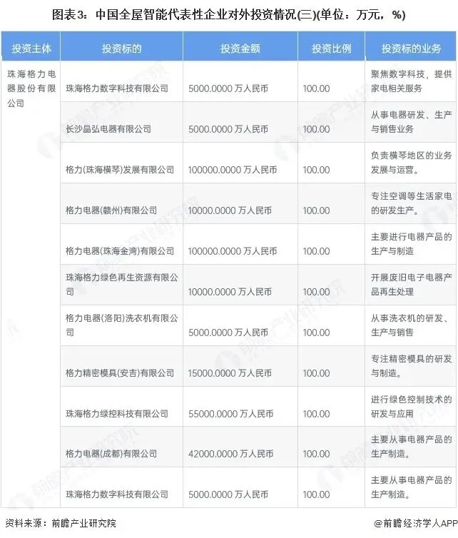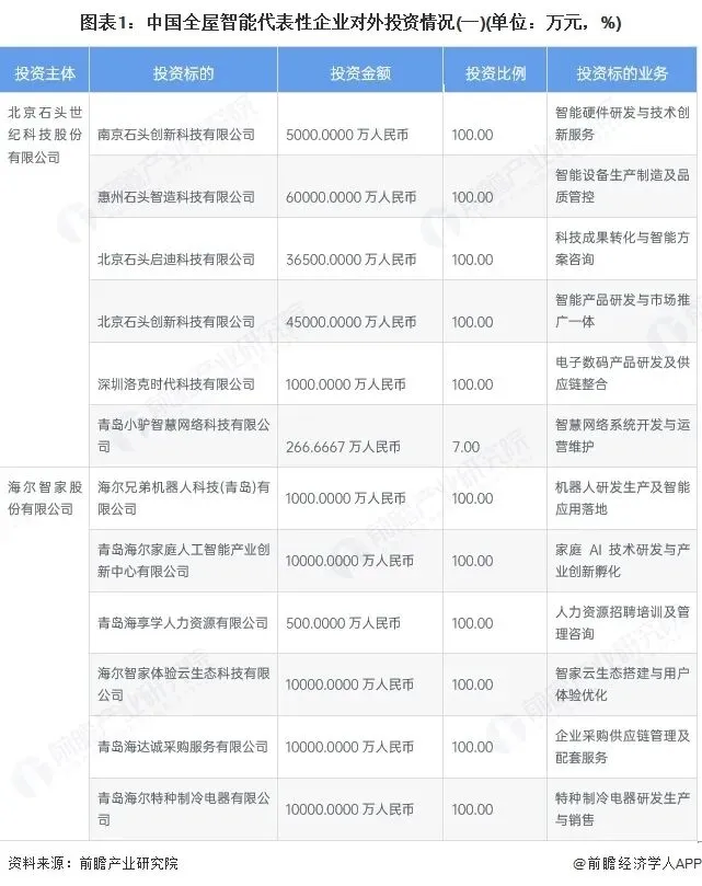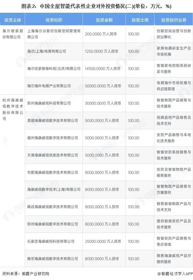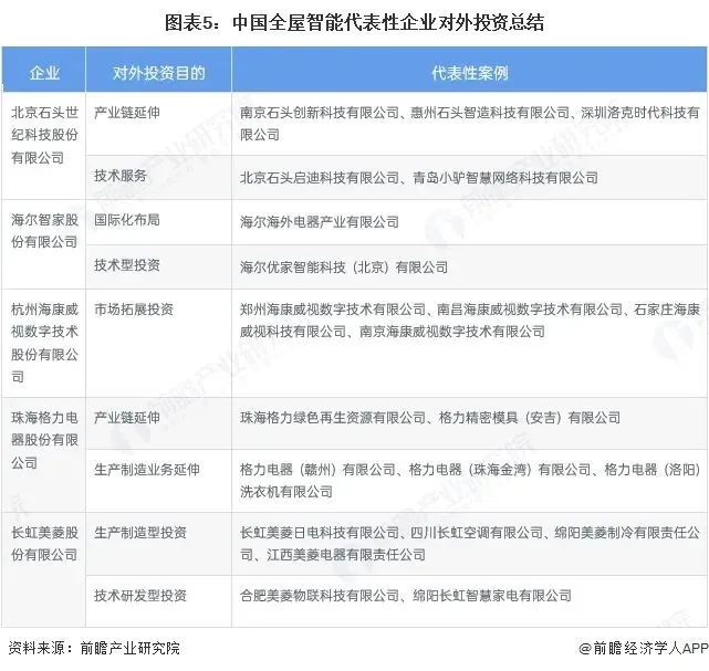 从几家代表性企业的对外投资来看,中国全屋智能行业代表性企业的对外投资主要围绕产业链延伸、技术服务、国际化布局、市场拓展、生产制造及技术研发等方向展开。例如,石头科技注重产业链延伸和技术服务,海尔智家聚焦国际化与技术型投资,海康威视重点进行市场拓展,格力电器和长虹美菱则分别在产业链、生产制造及技术研发方面进行投资布局,整体呈现出多元化、专业化和协同发展的投资特征。