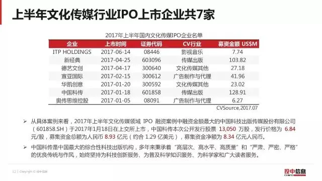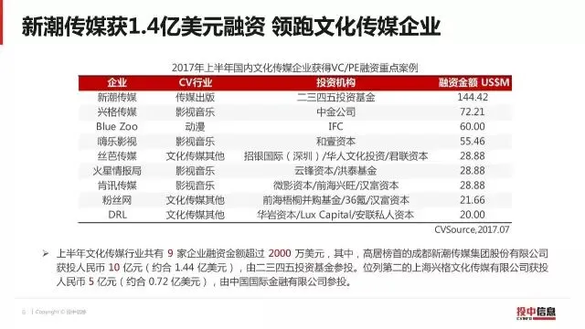 【四条】2017上半年文化传媒行业投融资报告