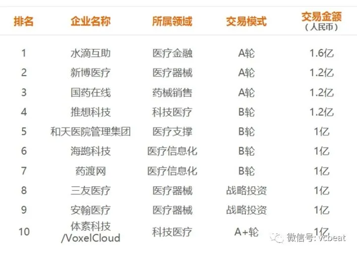 2017年Q3:国内医疗健康行业获投资金TOP10
