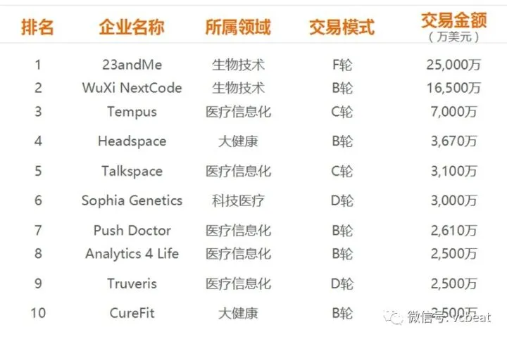 2017年Q3:海外医疗健康行业获投资金TOP10