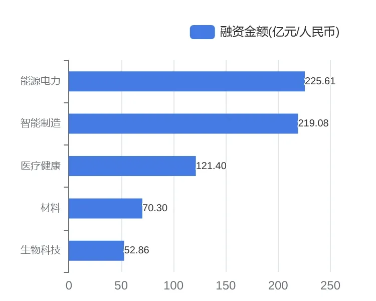 另外已披露交易金额排名前五的行业依次为能源电力、智能制造、医疗健康、材料、生物科技,涉及已披露总金额为689.26亿元人民币(占所有行业74%)。