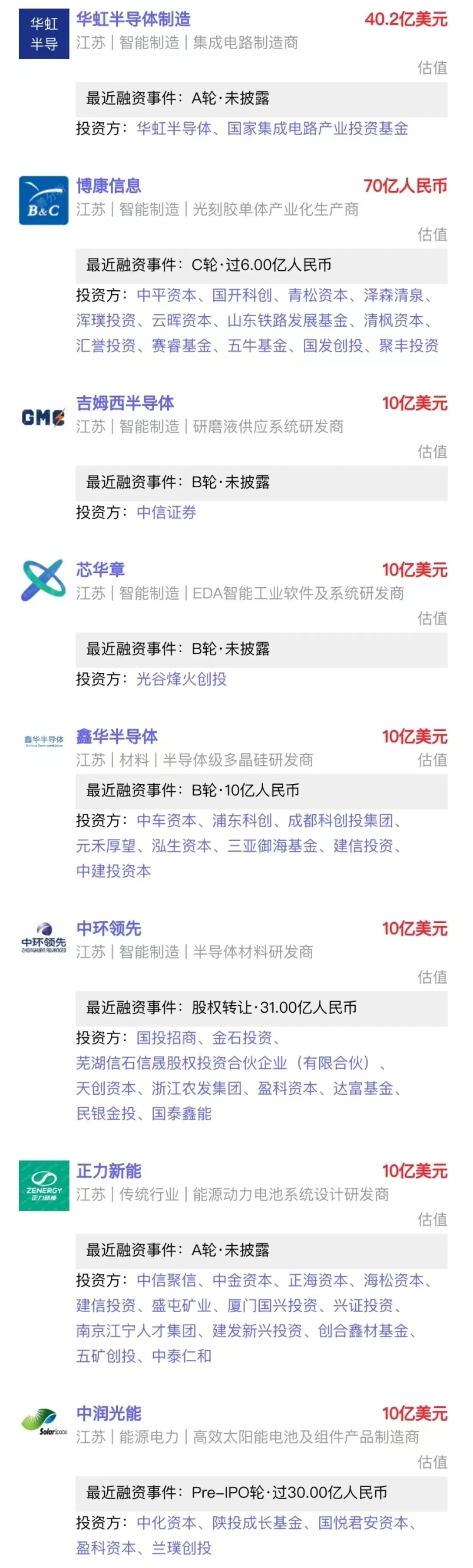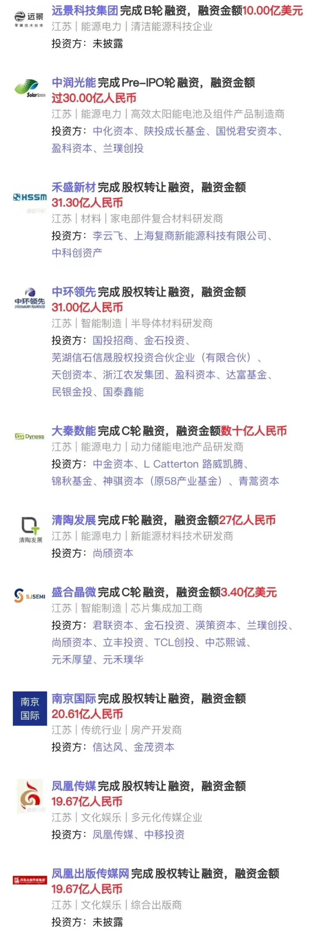 2023年「江苏省」中国新增大额融资事件(部分)