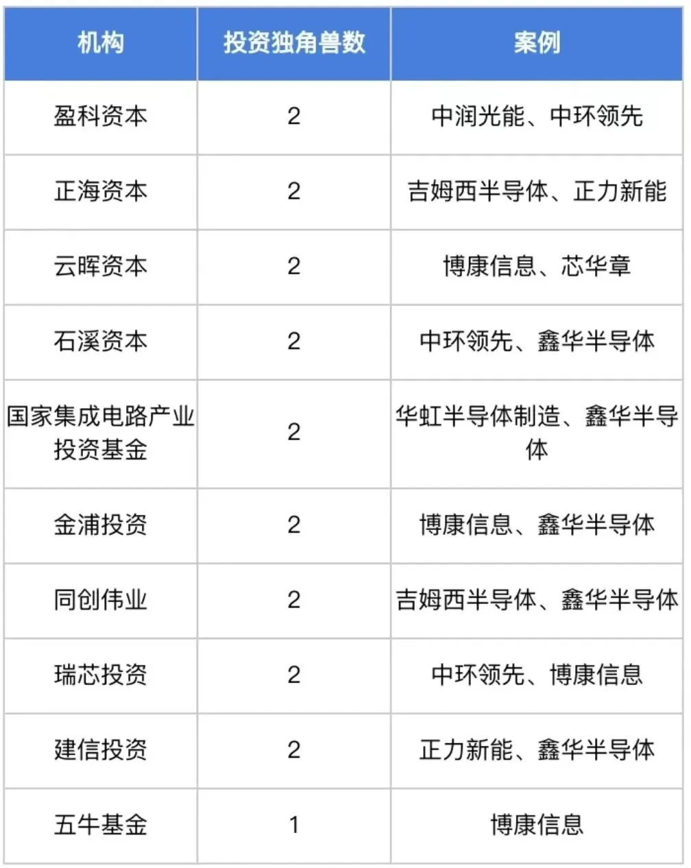 在对2023年「江苏省」8家新晋独角兽企业的投资战绩中,投出独角兽公司数排名前五的投资机构为:盈科资本(2个)、正海资本(2个)、云晖资本(2个)、石溪资本(2个)、国家集成电路产业投资基金(2个)。