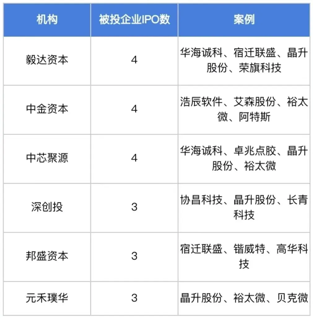 2023年截至12月底,「江苏省」有6家机构投资企业IPO超过3家,其中较为瞩目的是毅达资本,已有4家被投企业IPO。
