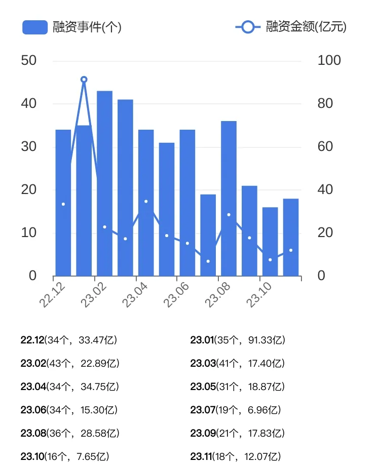 睿兽分析数据显示,2023年11月中国一级市场「生物科技」行业发生融资事件18个,比上月增加2个(