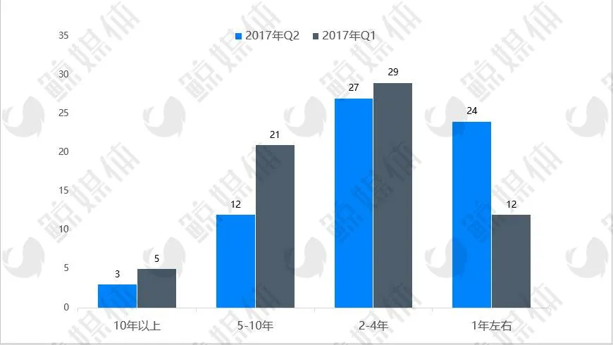 整体而言,第二季度获投的公司中,成立1年左右的公司数量明显多于第一季度,而成立5-10年的公司则少于Q1的数量。