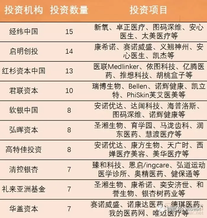 2017:中国医疗健康行业活跃投资机构,动脉网蛋壳研究院整理