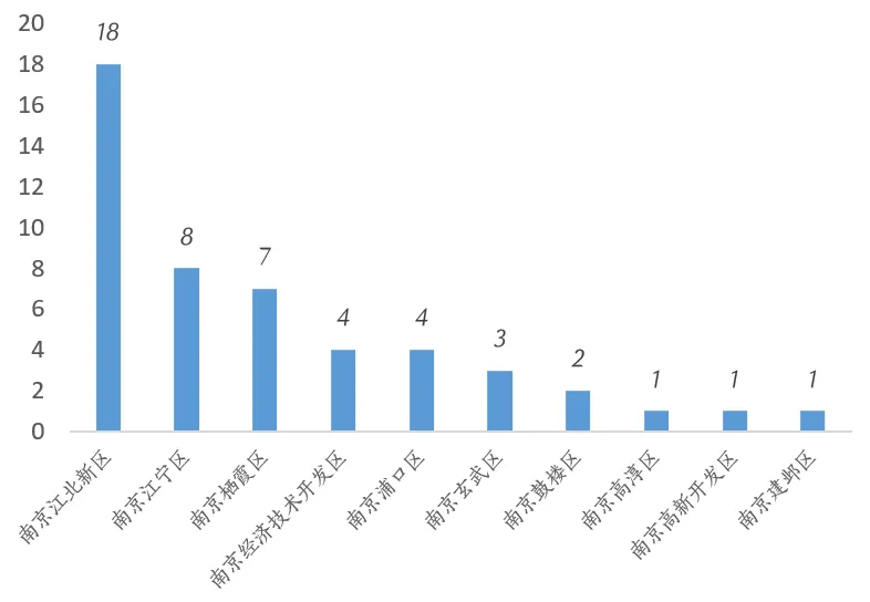 2021年,南京江北新区发生的融资事件数量最多。