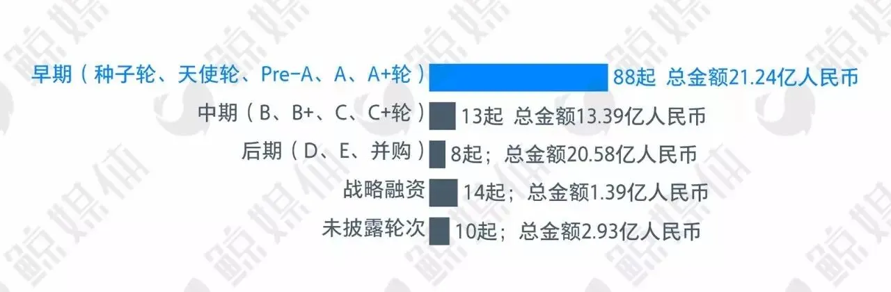 (1)获投的教育公司有三分之二都还在早期阶段,早期阶段融资数量达88起,占总数的66.17%。