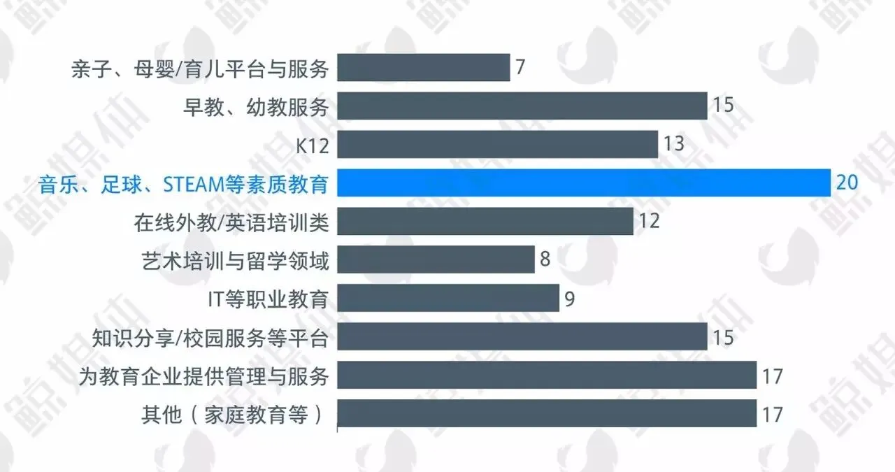其中素质教育领域热度最大,共有20起投融资事件,约占总投融资事件数量的15.04%。