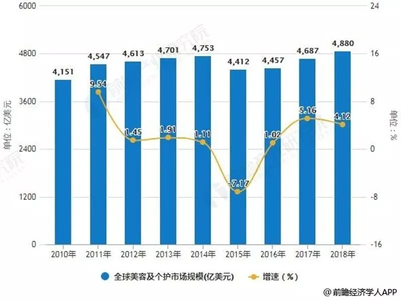 2010-2018年全球美容及个护市场规模统计及增长情况