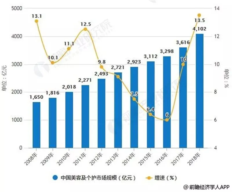 2009-2018年中国美容及个护市场规模统计及