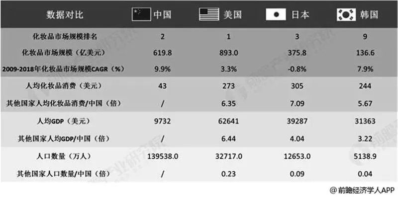 中美日韩化妆品消费市场对比情况