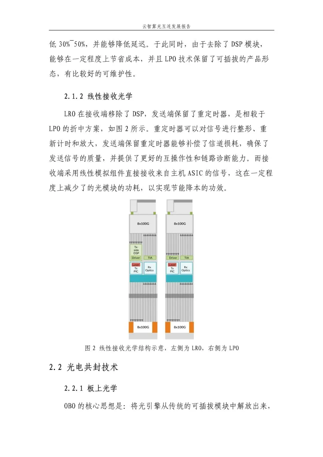 LPO(线性可插拔光模块):移除DSP模块降低功耗30%-50%,保留可维护性,适配AIGC算力网络短距场景。 LRO:作为折中方案,平衡性能与成本。 光电共封装技术