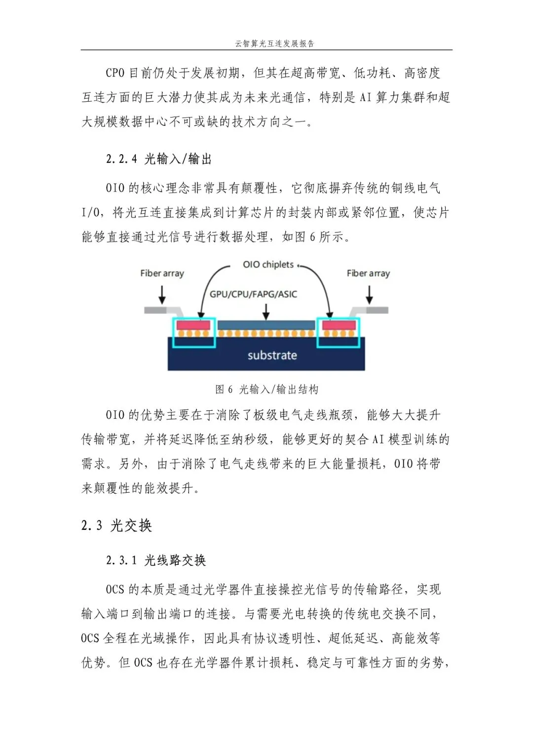 CPO(共封装光学):集成度高,长期将向端到端演进,短期优先用于超节点Scale-Up网络(如XPU与交换机间互连)。 NPO:过渡性方案,OIO(集成光学)未来潜力显著。 光交换技术