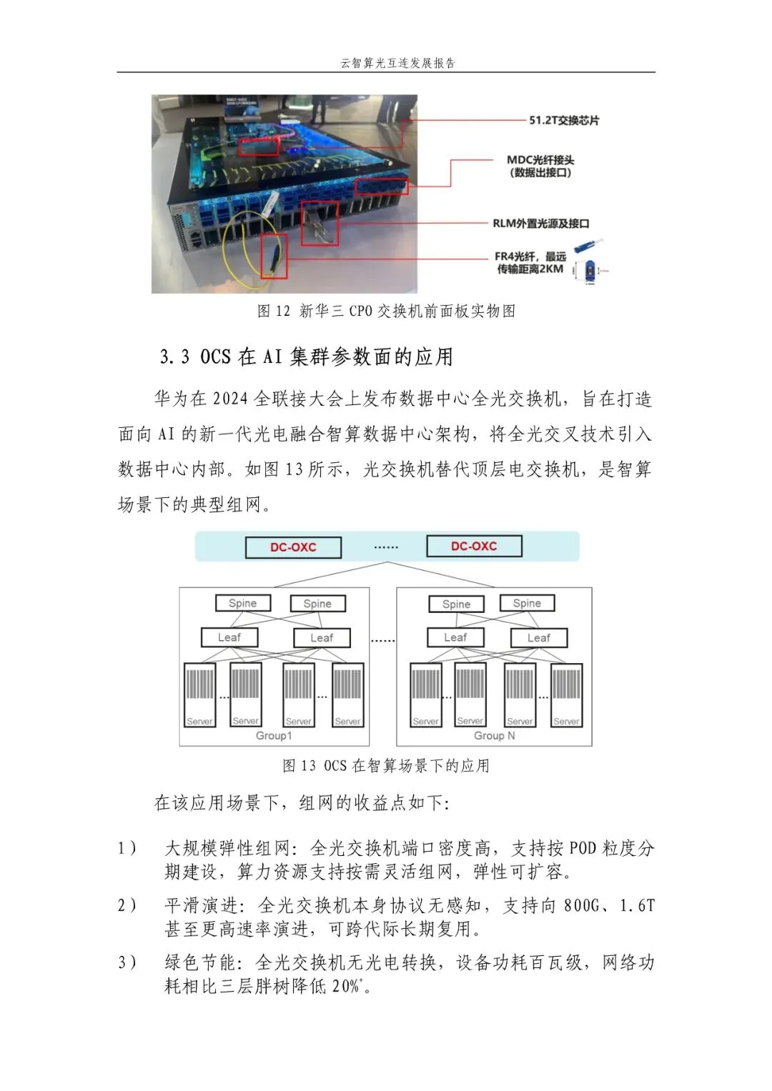 智算中心:CPO交换机高吞吐适配大规模AIGC组网,OCS替代Super Spine支撑Scale-Out集群。 产业协同:需推动电芯片、光芯片、封装等环节深度合作,建立标准化接口与生态。